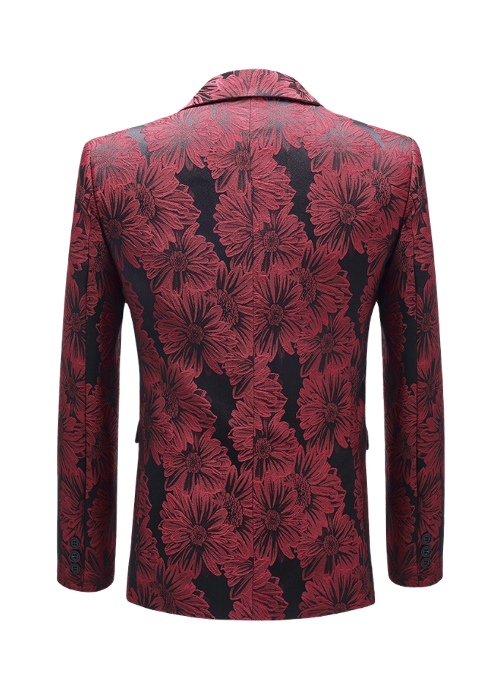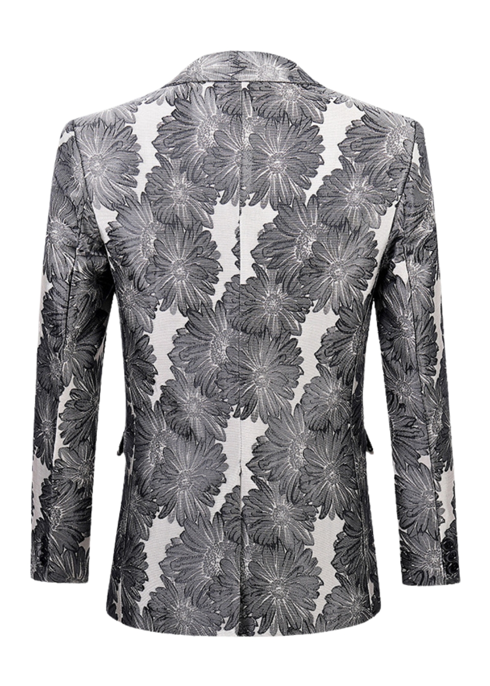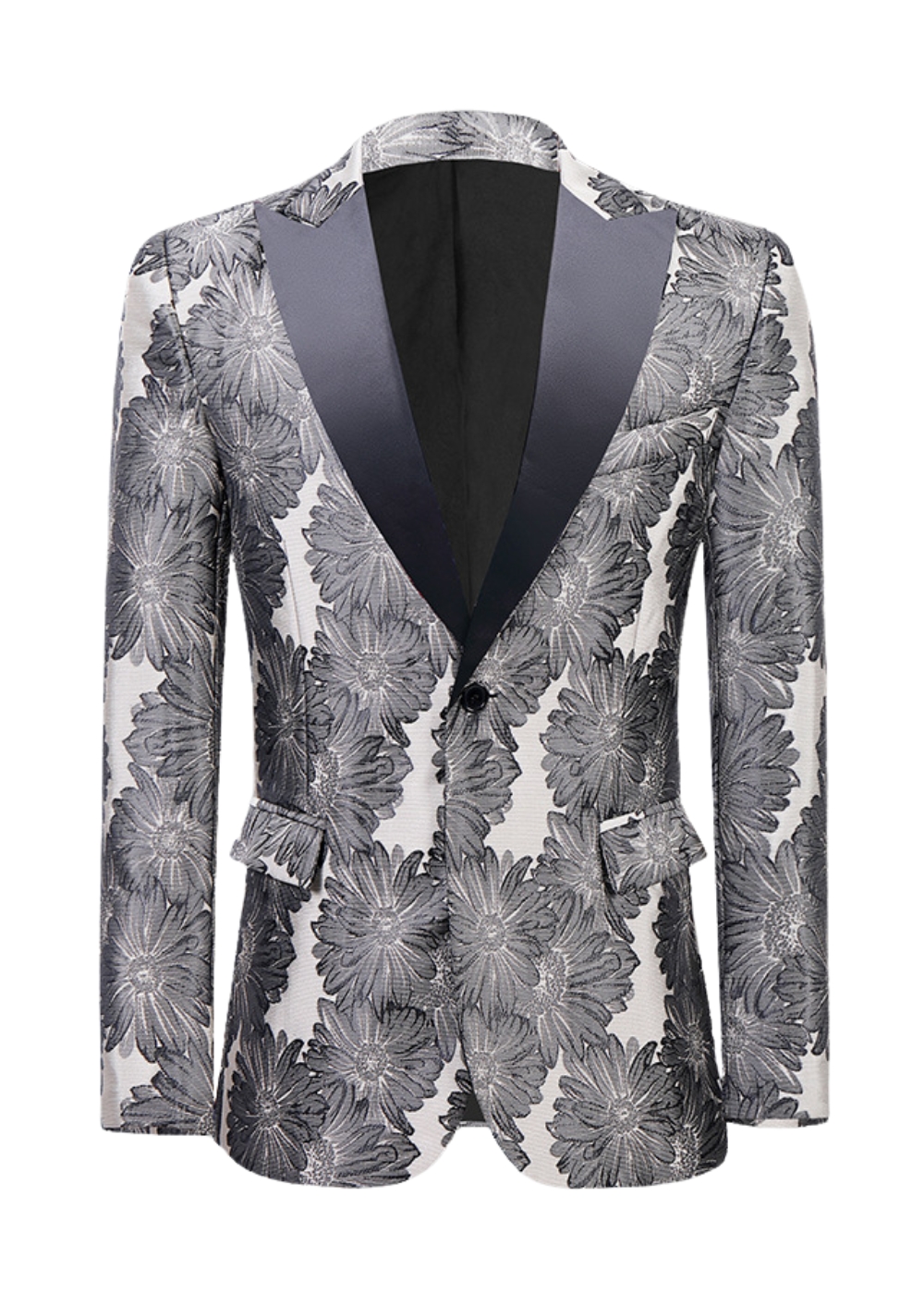Floral Jacquard 1 Button Peak Lapel Prom Tuxedo Jacket