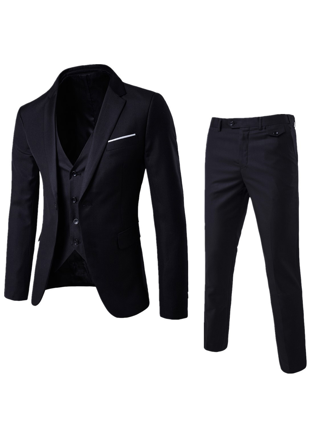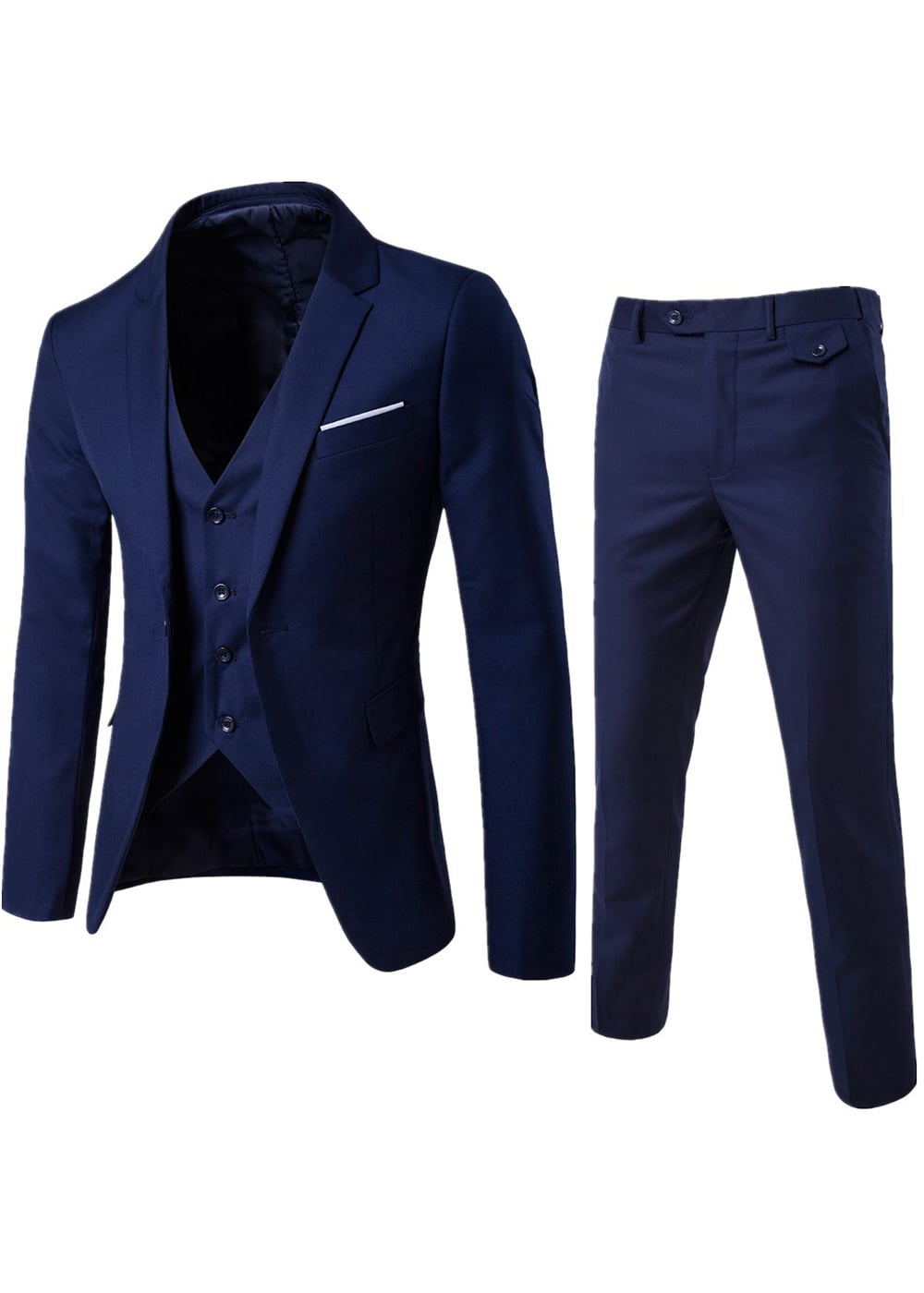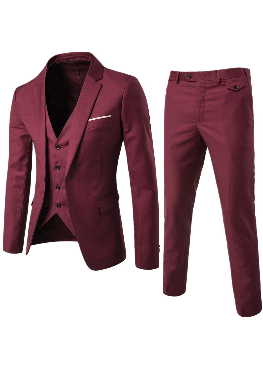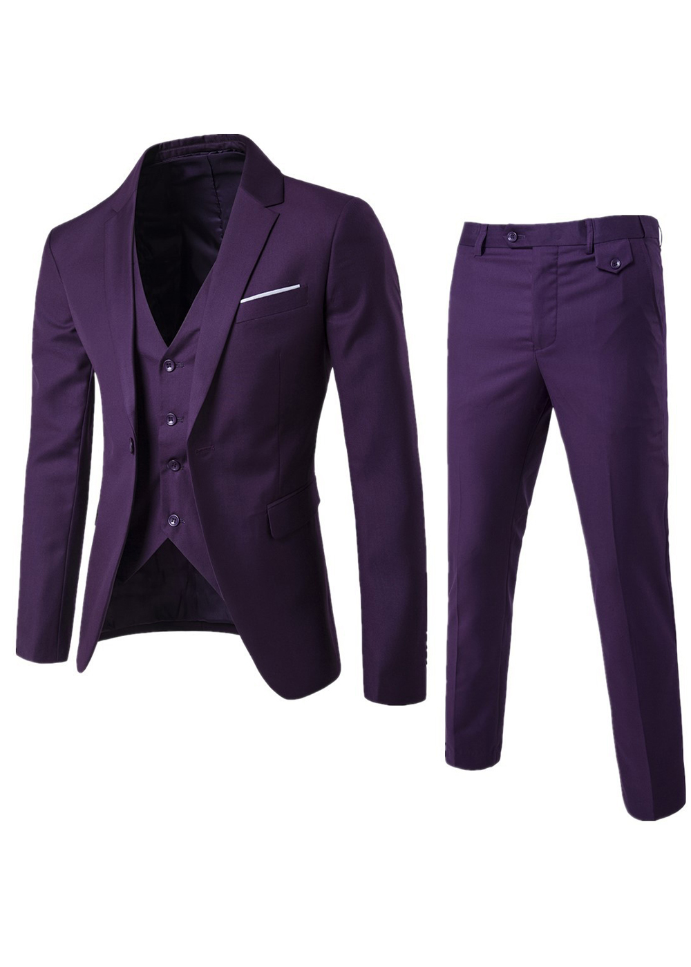 Elevate your formalwear collection with this stylish 3-piece suit. Featuring a sharp notch lapel blazer, a coordinating vest, and tailored flat-front trousers, this ensemble is perfect for weddings, proms, or special events. Made from high-quality materials, it offers a refined look with lasting comfort. Available in a variety of colors, this suit is designed to suit any personal style while making a lasting impression.