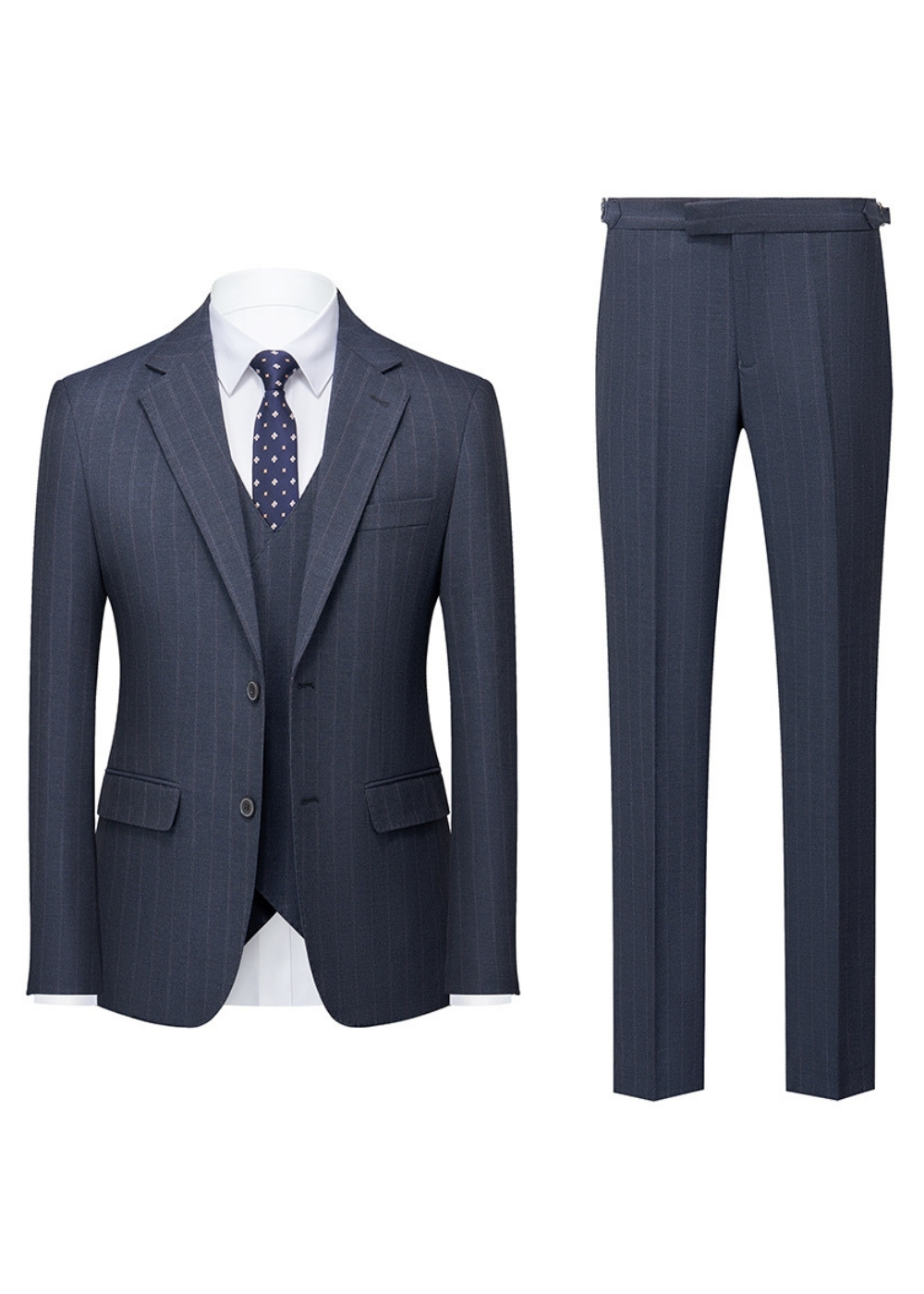 Men's 2-Button Single-Breasted Navy Pinstripe Vest Suit for Wedding & Business