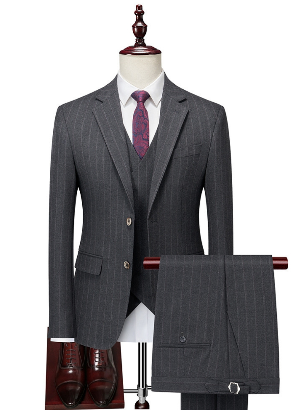 Men’s 2-Button Pinstripe Notch Lapel Vested Wedding & Prom Suit