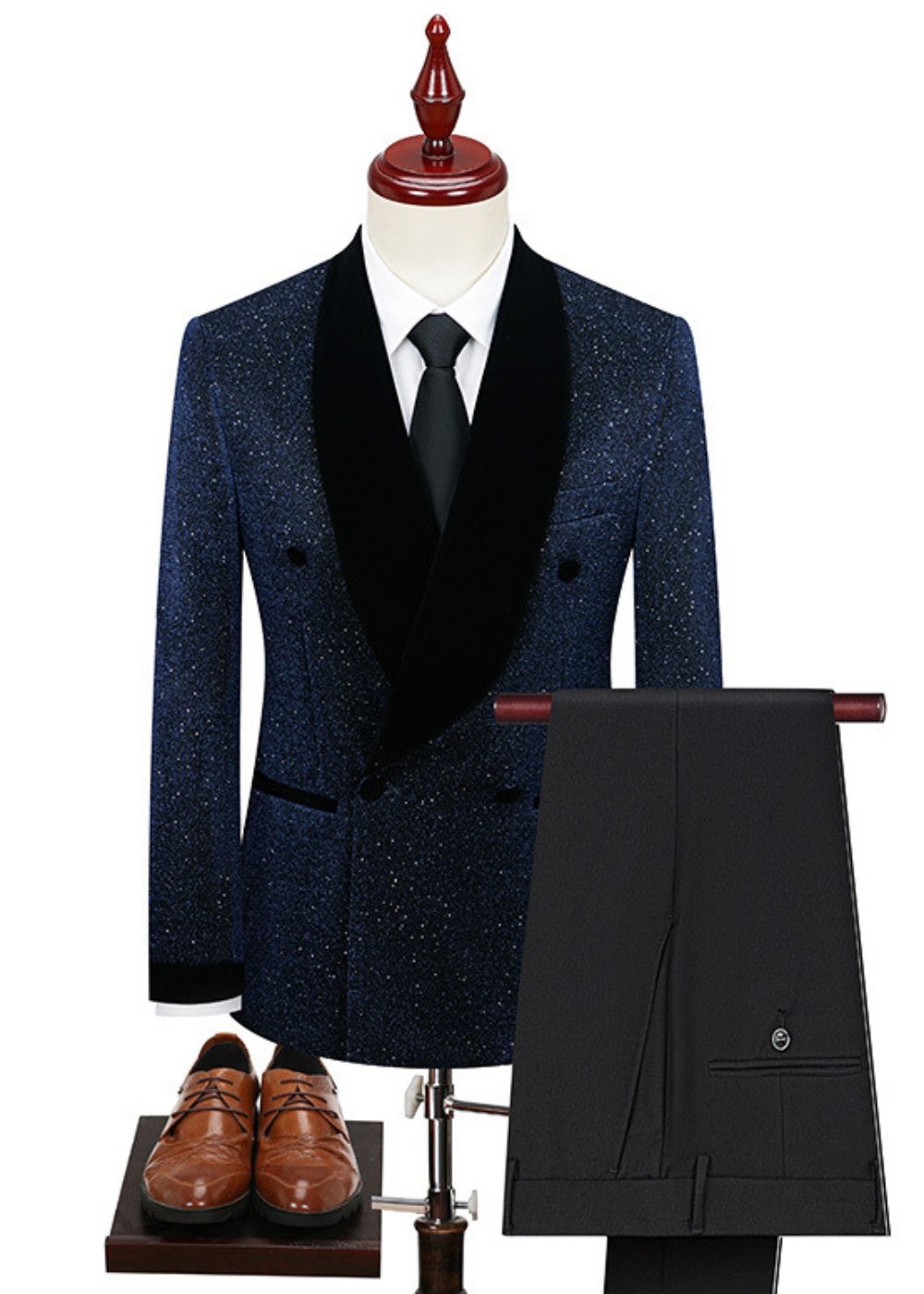 Men’s 2-Piece Sequin Double-Breasted Shawl Lapel Prom Tuxedo Suit