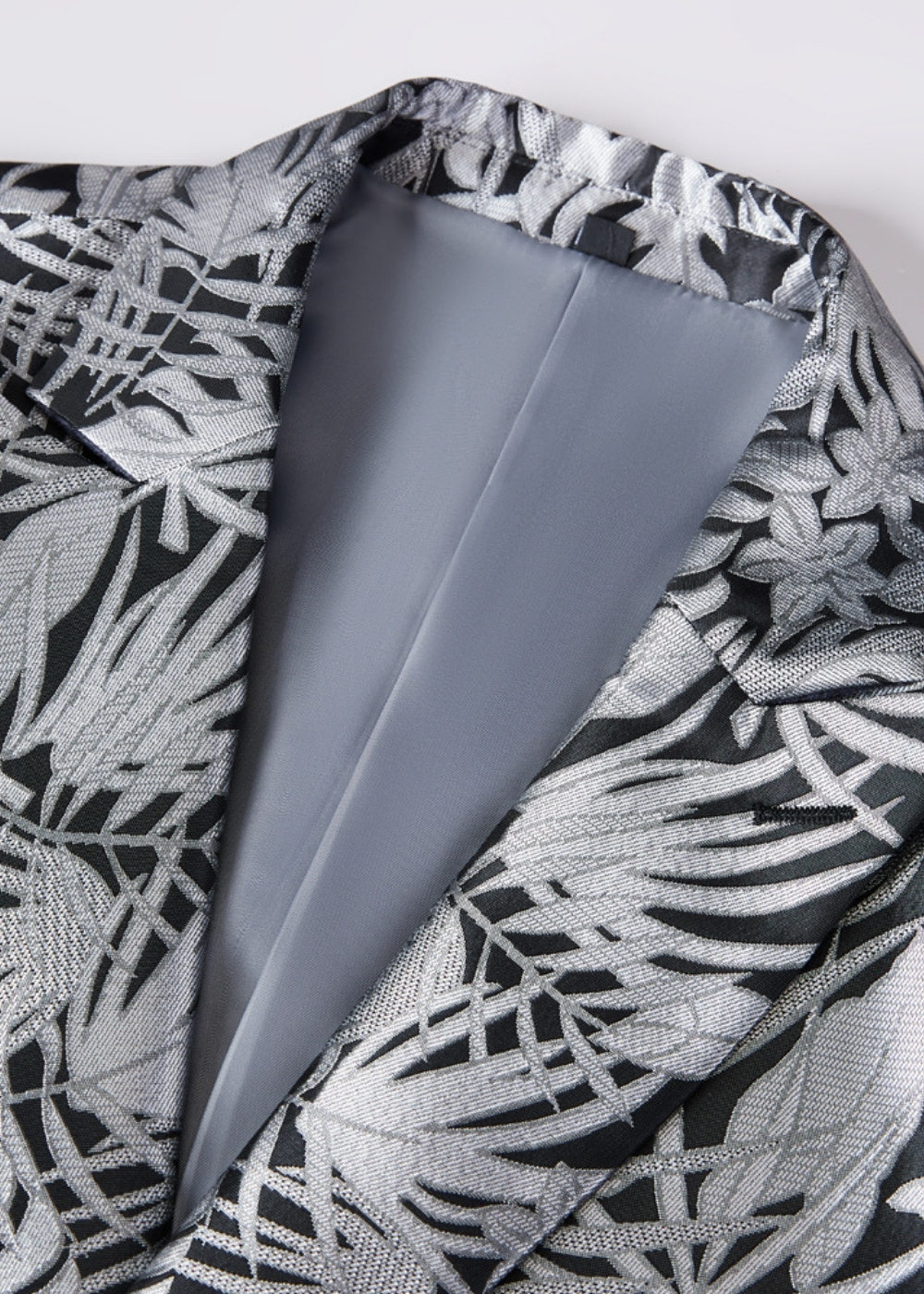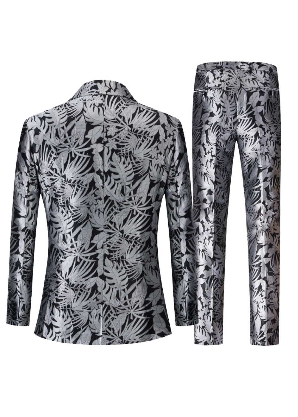 Men’s 3 button Double-Breasted 2-Piece Silver Floral Pattern Suit