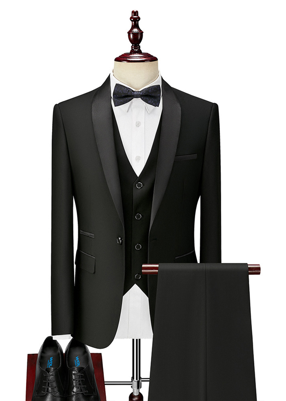 Men’s 3-piece 1 Button Shawl Label Suit for Wedding & Formal Events