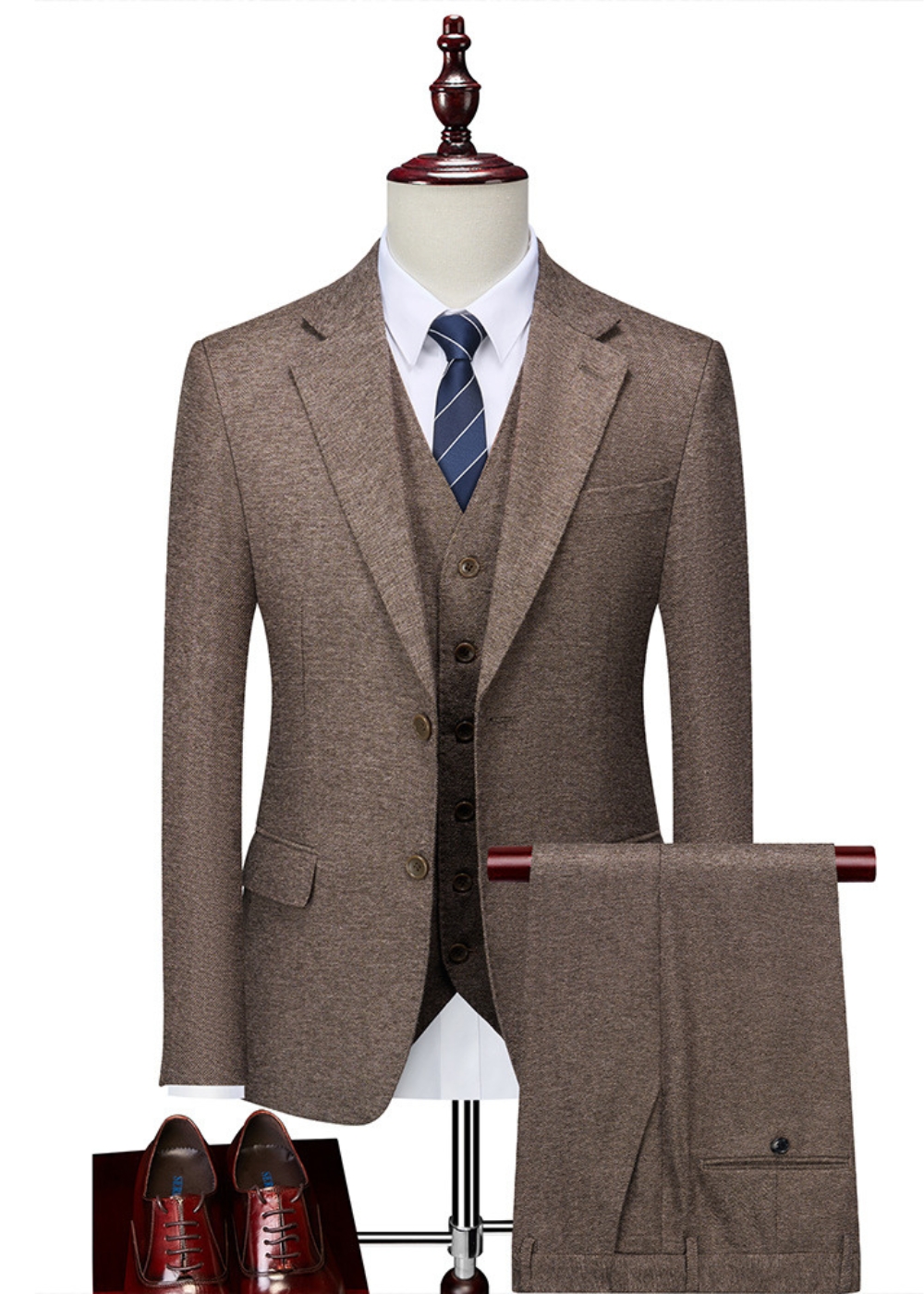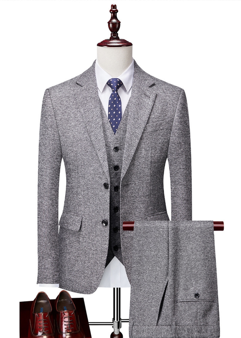 Men’s 3-Piece Textured 2-Button Notch Lapel Vested Suit for Business Casual